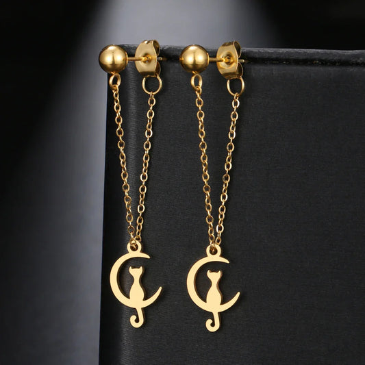 Oorbellen Kat Met Ketting