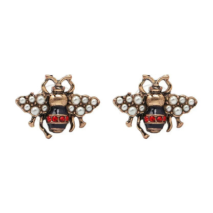 Elke oorbel toont een fijn gesculpteerde bij, een symbool van ijver en doorzettingsvermogen.