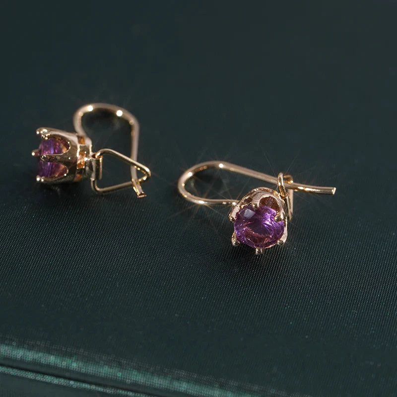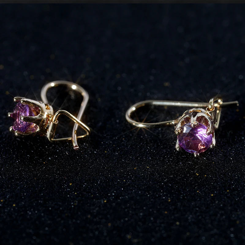 Ontdek deze delicate oorbellen Amethist Oorbellen met Haak, een sieraad dat elegantie en raffinement belichaamt. Hun ronde vorm, versierd met een paarse centrale steen, roept een subtiele esthetische harmonie op die uw gezicht zal laten stralen.