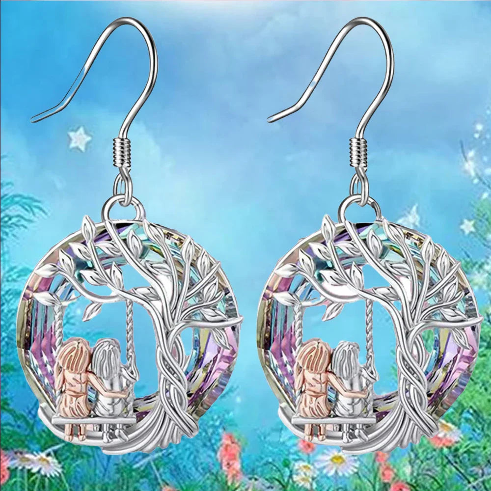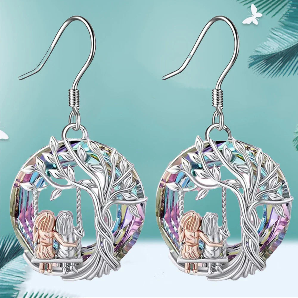 Laat u betoveren door de elegantie van de oorbellen "Oorbellen Levensboom Voor Meisje", waar de charme van de natuur samensmelt met een vleugje fantasie. Deze cirkelvormige creaties, in zilverkleurig metaal met veelkleurige reflecties, vangen het licht en trekken bewonderende blikken.