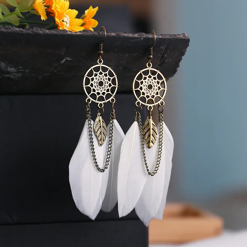 Met hun lichtbruine veren die sierlijk meebewegen, geven ze een gevoel van lichtheid aan je stijl, of je nu uitgaat met vrienden of door de stad wandelt. Elke keer dat je ze draagt, voel je een diepe verbinding met je avontuurlijke en artistieke kant. Hun middelgrote tot grote formaat trekt de aandacht en blijft toch comfortabel om te dragen, perfect om je unieke persoonlijkheid te uiten.