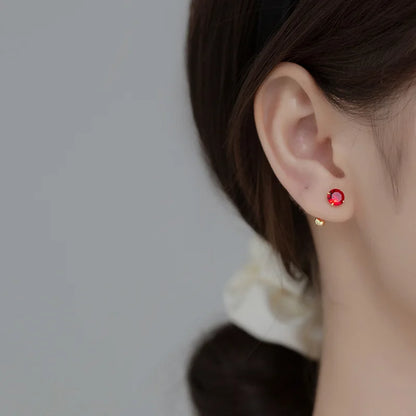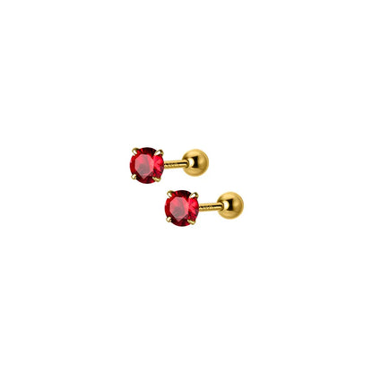 Ontdek de subtiele charme van de Baby Oorbellen Rode Robijn, een stuk dat elegantie en minimalisme combineert. Deze rechte gouden bar, versierd met een delicaat bolletje, eindigt in een fascinerende schittering van een ronde rode kristal, wat een vleugje levendige kleur aan je look toevoegt.