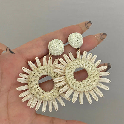 Ontdek de magie van de Boho oorbellen Zonneoorbellen van Stro, een uniek stuk dat een natuurlijke elegantie aan jouw outfit toevoegt. Met hun cirkelvormige ontwerp, versierd met delicate patronen in de vorm van bloemblaadjes, vangen deze oorbellen het licht en de aandacht, terwijl ze een lichte en betoverende uitstraling behouden.