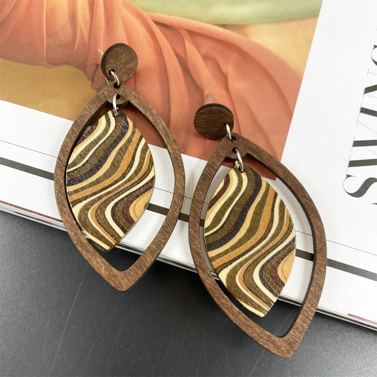 Ontdek de tijdloze schoonheid van de Oorbellen Hout Blad, ontworpen om uw uitstraling te verrijken en u te verbinden met de natuur. Met hun elegante druppelvorm, versierd met een delicaat bladmotief, voegen deze bruine houten oorbellen een organische touch toe aan uw stijl.
