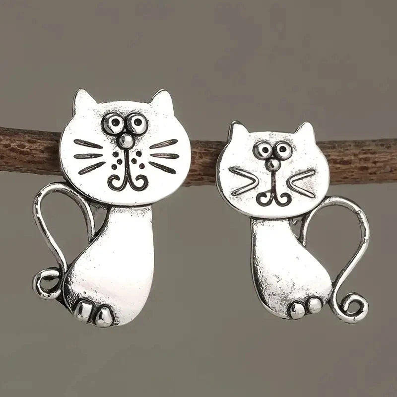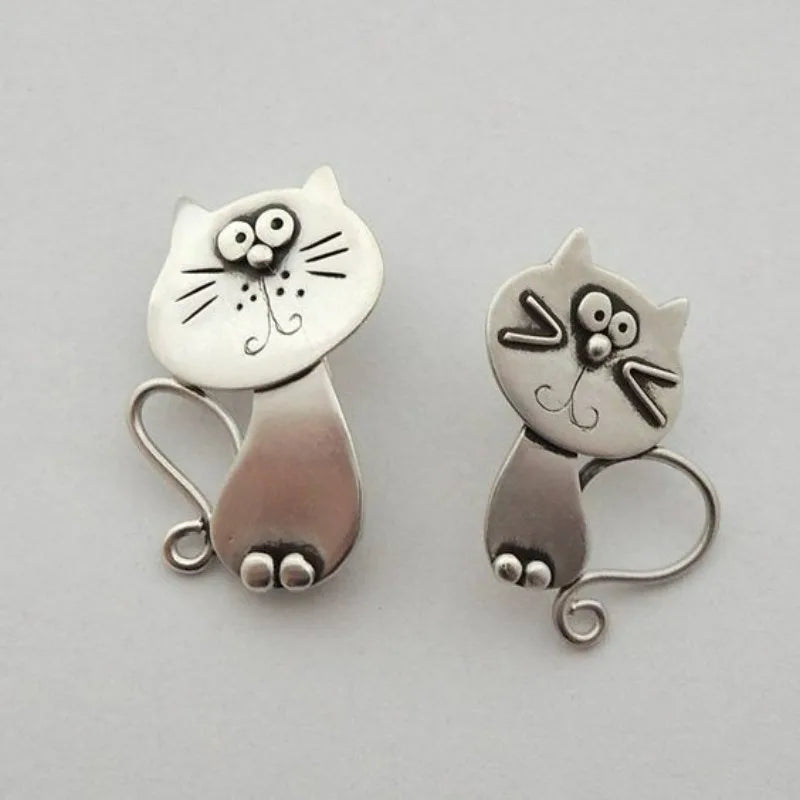 Ontdek de fijnheid van de asymmetrische oorbellen in de vorm van een gestileerde kat. Deze kleine pareltjes in zilver brengen een vleugje humor en lichtheid in je stijl van alledag. Stel je voor dat je deze unieke stukken draagt, waarbij je jouw sprankelende persoonlijkheid onthult en een glimlach tovert op de gezichten om je heen.