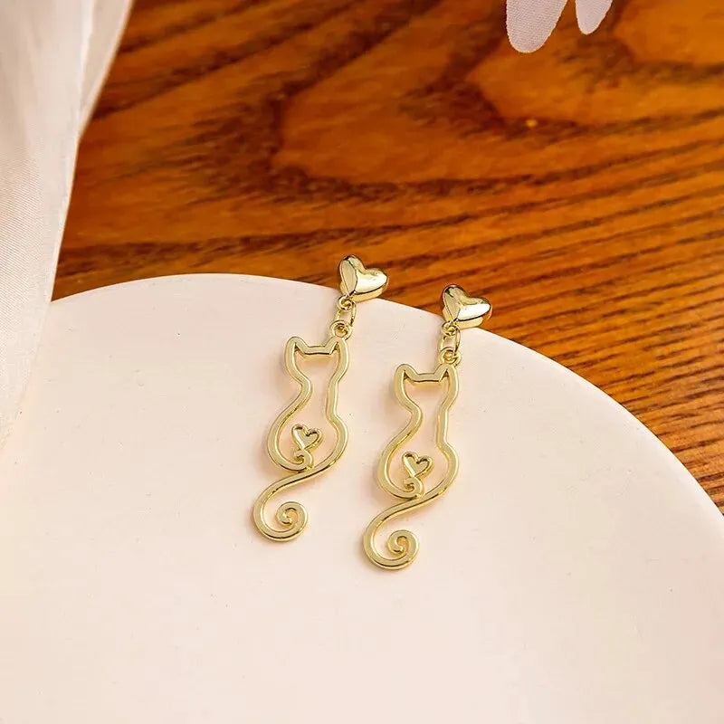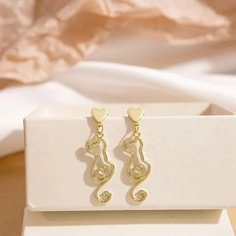 Laat u betoveren door de subtiele elegantie van deze oorbel in de vorm van een kat, ideaal voor elk meisje dat een vleugje zachtheid aan haar look wil toevoegen. De goudkleurige glans roept warme en zonnige momenten op, terwijl de fijne spiraal van de staart een gevoel van beweging en lichtheid geeft.