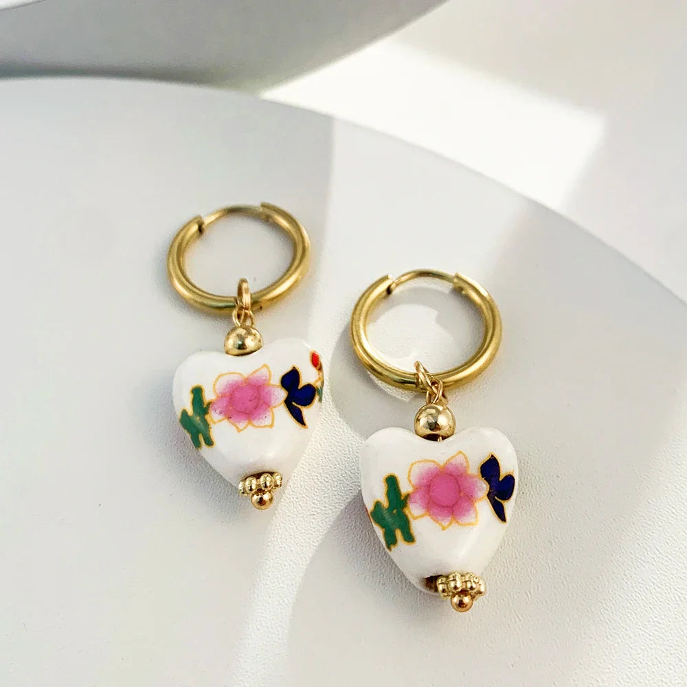 Elegantie, verfijning en emotie versmelten harmonieus in deze betoverende Ceramische Hartvormige Oorbellen. Met ongeëvenaarde artistieke precisie vervaardigd, zijn ze het bewijs van een uitzonderlijk juweliersvakmanschap. Hun hartvormige ontwerp, het universele symbool van liefde en passie, roept nostalgie op naar de eerste liefdeservaringen.