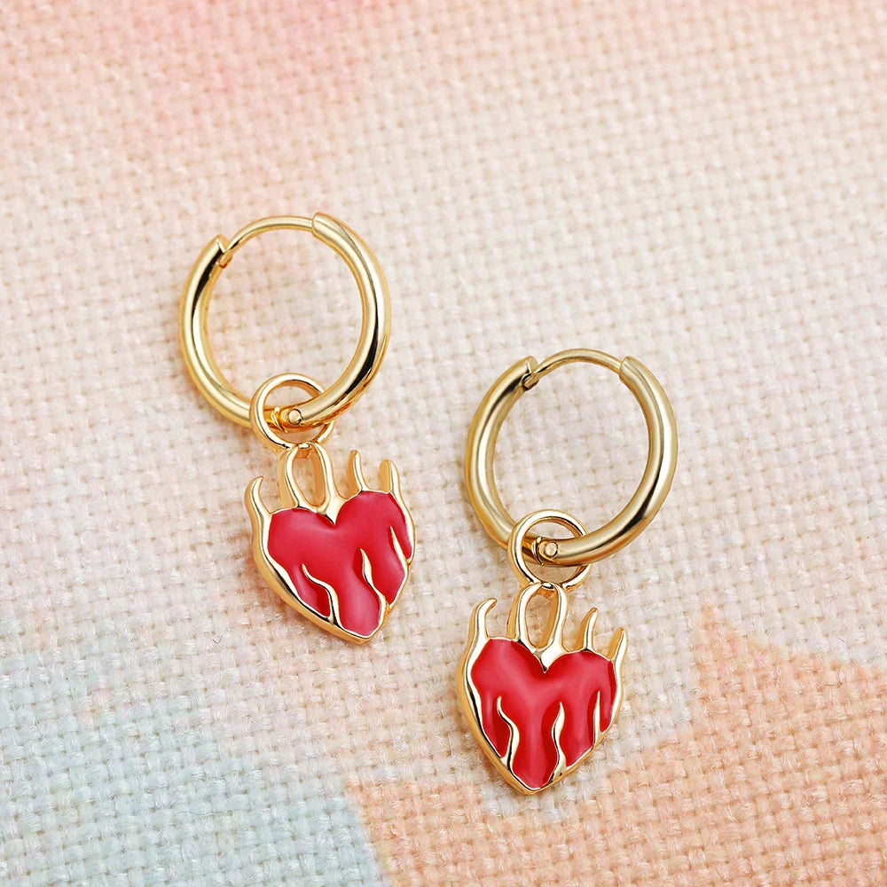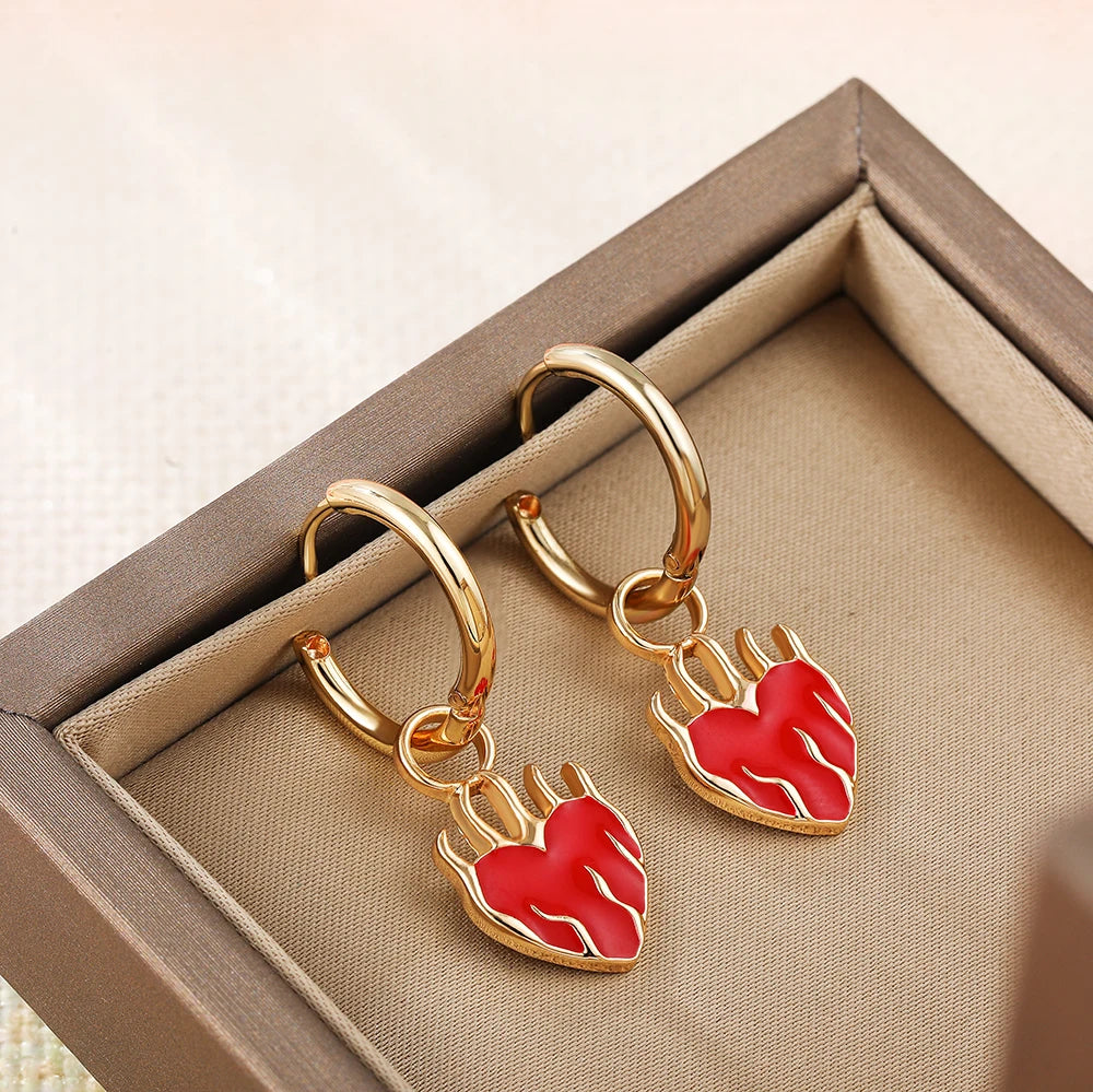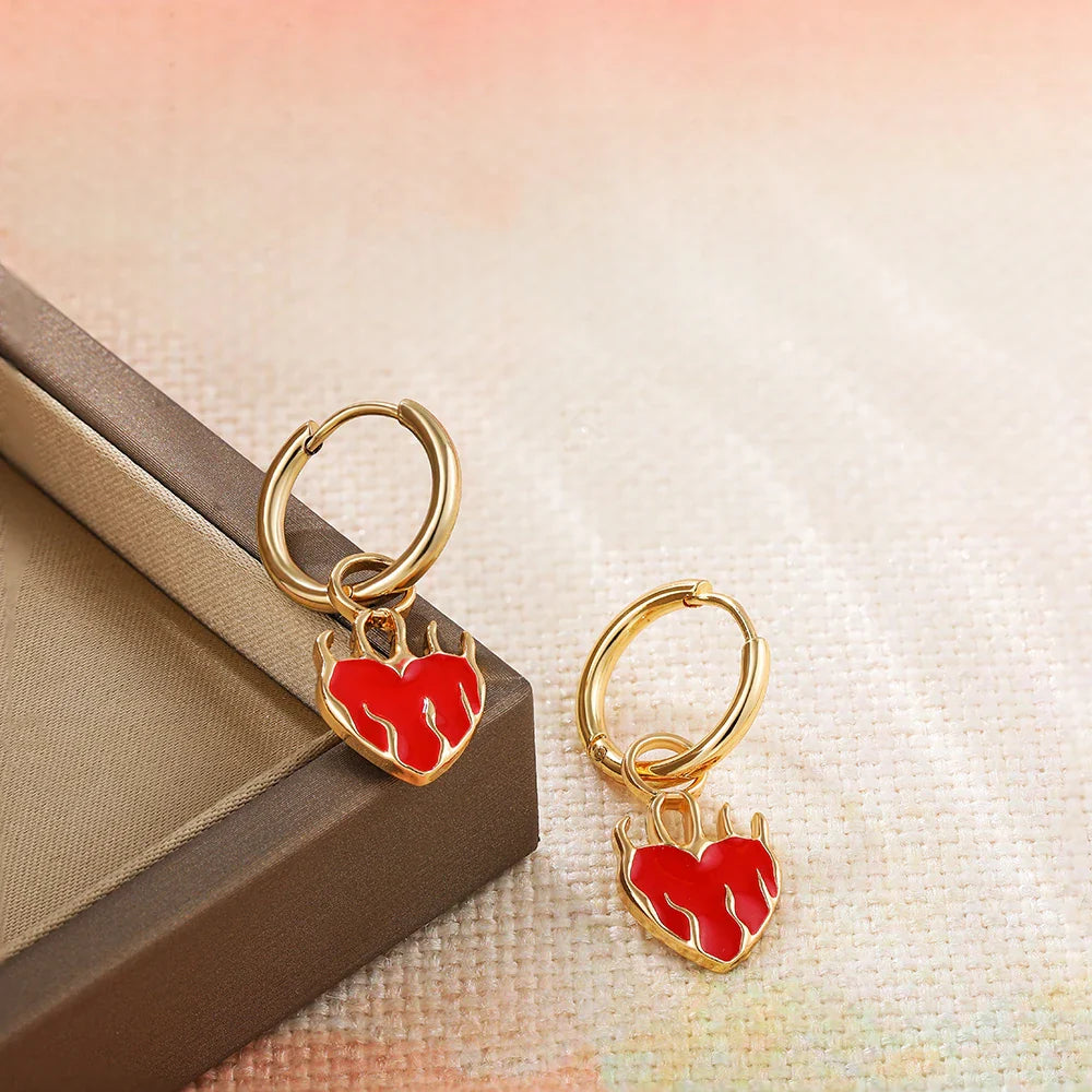 De hanger in de vorm van een hart, versierd met rode vlammotieven, voegt een gedurfde touch toe die uw gezicht verlicht en uw unieke persoonlijkheid onthult. Het dragen van deze oorbel is veel meer dan een simpele keuze van stijl; het is een uitnodiging om uw gevoelens uit te drukken en uw individualiteit te vieren.