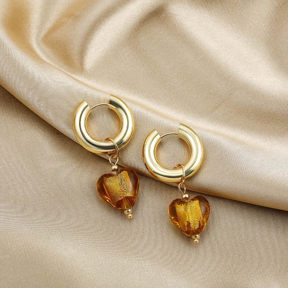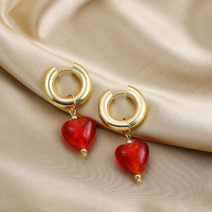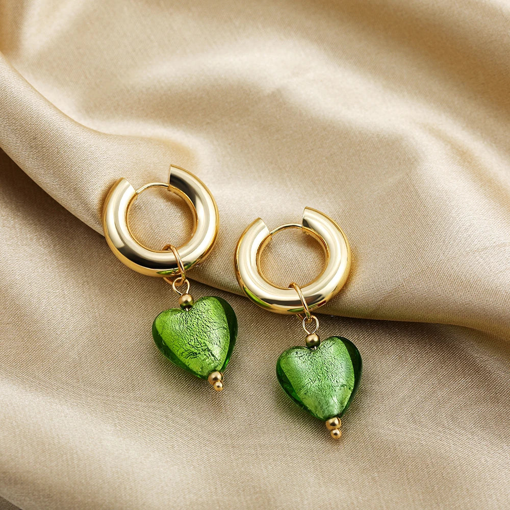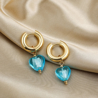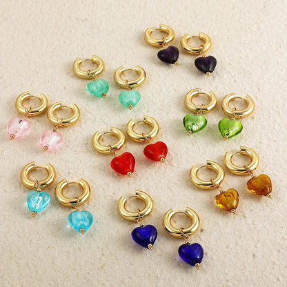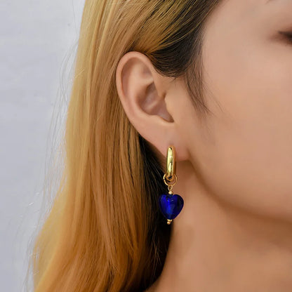 Ontdek de hartvormige oorbel, een sieraad dat elegantie combineert met een charmante zachtheid. Ontworpen met fijne gouden ringen, onderscheidt deze oorbel zich door haar prachtige hangers in levendige kleuren, variërend van rustgevend violet tot krachtig rood.