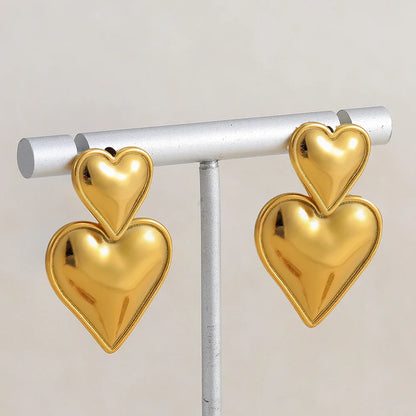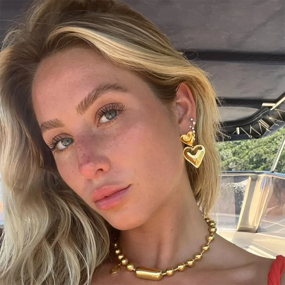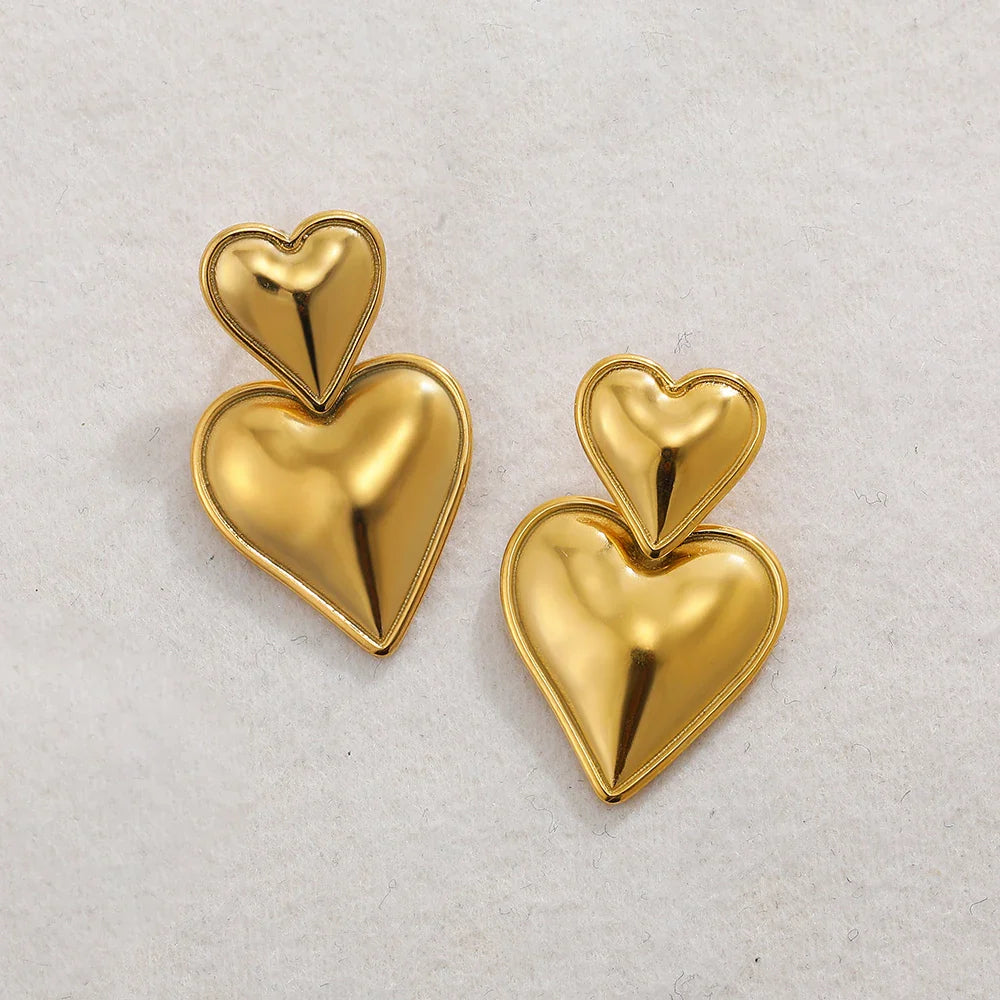 Ontdek de delicatesse van de oorbellen met gelaagde harten, een elegant accessoire dat uw meest waardevolle momenten zal verlichten. De sprankelende goudkleurige afwerking vangt het licht met gratie, en voegt een verfijnde touch toe aan al uw outfits, of het nu gaat om een romantische avond of een casual dag.