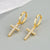 Dompel uzelf onder in tijdloze elegantie met de Dames Kruis Oorbellen, oorbellen in de vorm van ringen, verfraaid met fijne kruisvormige hangers. De stralende en verfijnde goudkleurige afwerking voegt een vleugje sophisticatie toe aan al uw outfits, of ze nu casual of gekleed zijn.