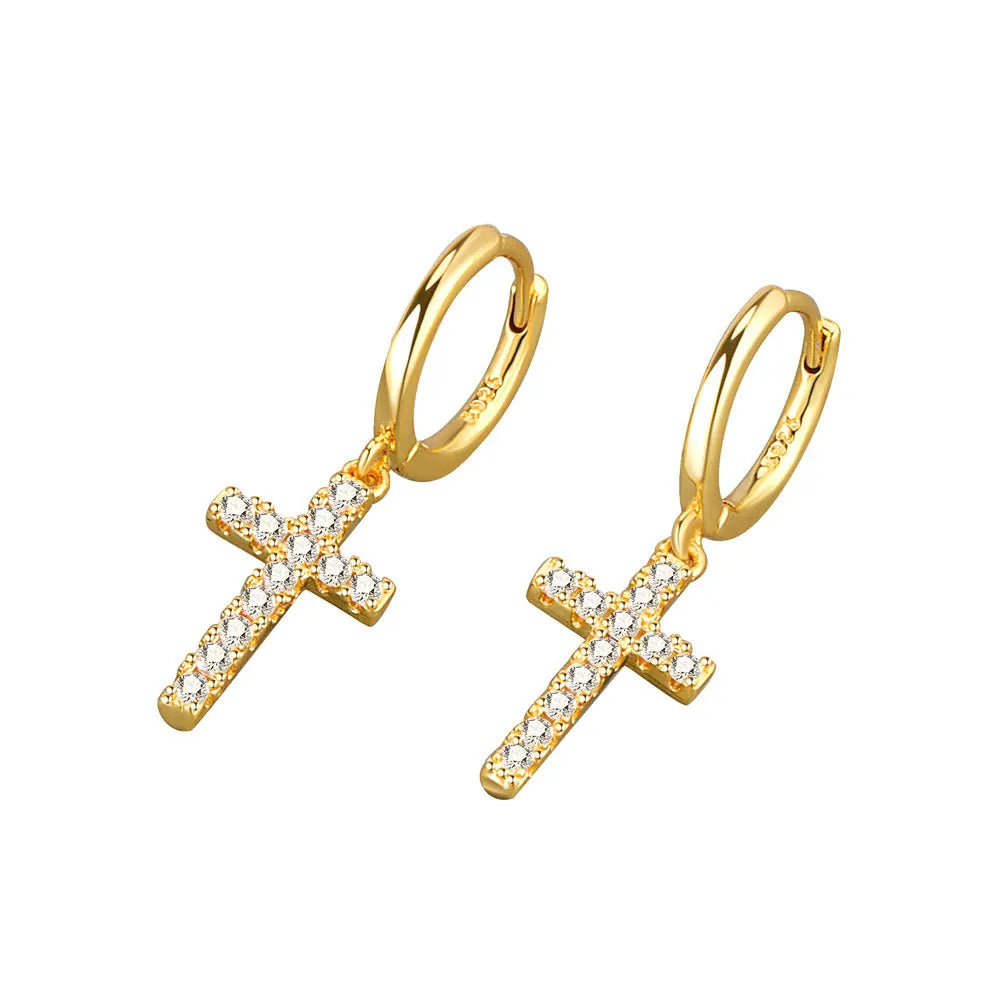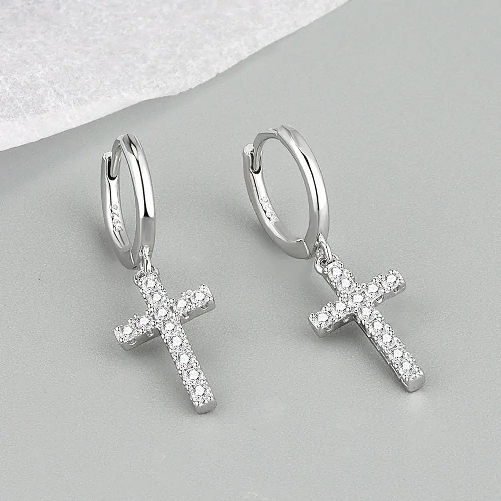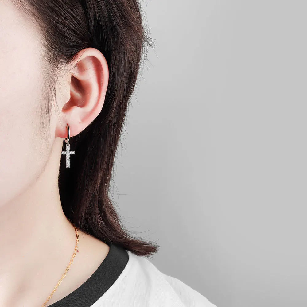 Deze oorbellen, van klein tot middelgroot formaat, zijn het perfecte juweel om uw persoonlijkheid uit te drukken en tegelijkertijd een glinsterende touch toe te voegen. Elk kruis, bezet met kleine fonkelende steentjes, vangt het licht op een subtiele manier, waardoor betoverende reflecties ontstaan die bewonderende blikken zullen trekken.