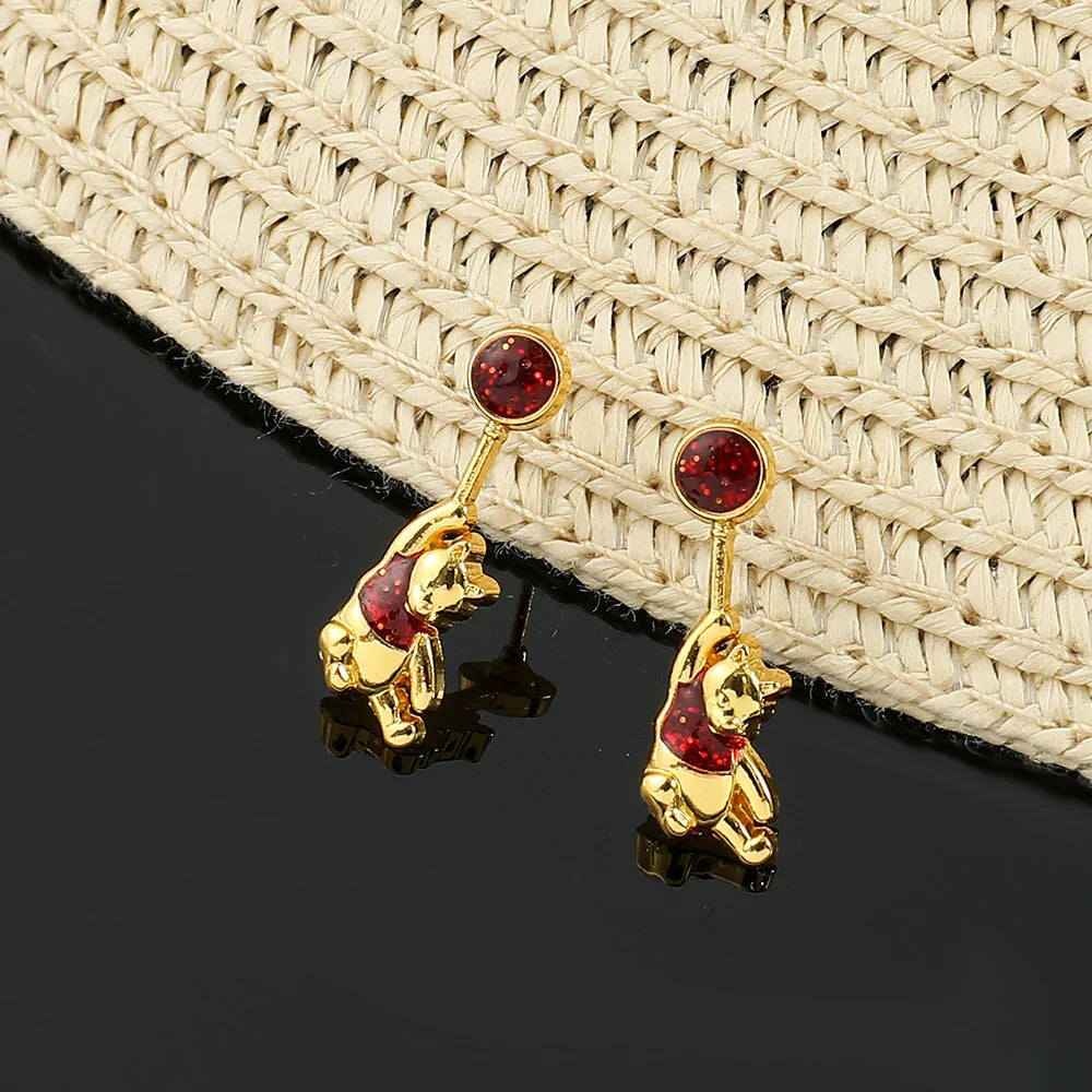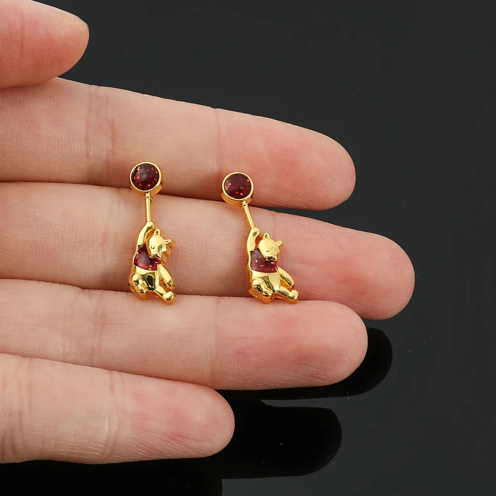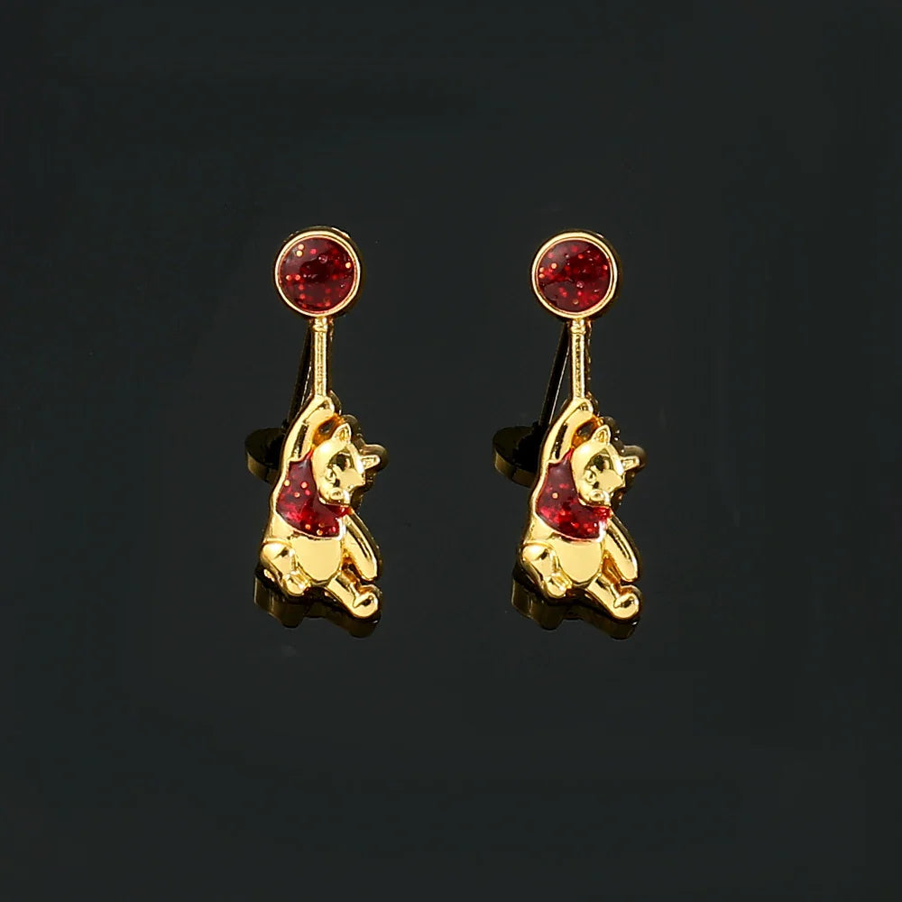Laat u betoveren door deze schattige Disney Winnie de Pooh hangende oorbellen, die een vleugje magie en zachtheid aan uw dagelijks leven geven. Met hun delicate gouden ontwerp, verfraaid met charmante rode details, roepen deze sieraden de tedere wereld van Winnie de Poeh op.