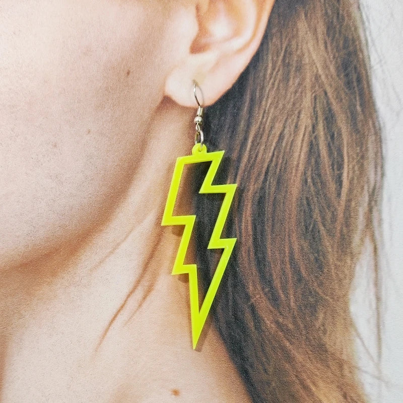 Duik in de elektriserende wereld met deze bliksemvormige oorbel van neon acryl. Met zijn gedurfde en moderne ontwerp voegt hij een vleugje frisheid en dynamiek toe aan al je outfits. Stel je voor dat je tijdens een avondje uit met vrienden bewonderende blikken aantrekt dankzij dit unieke stuk dat schittert onder de lichten.