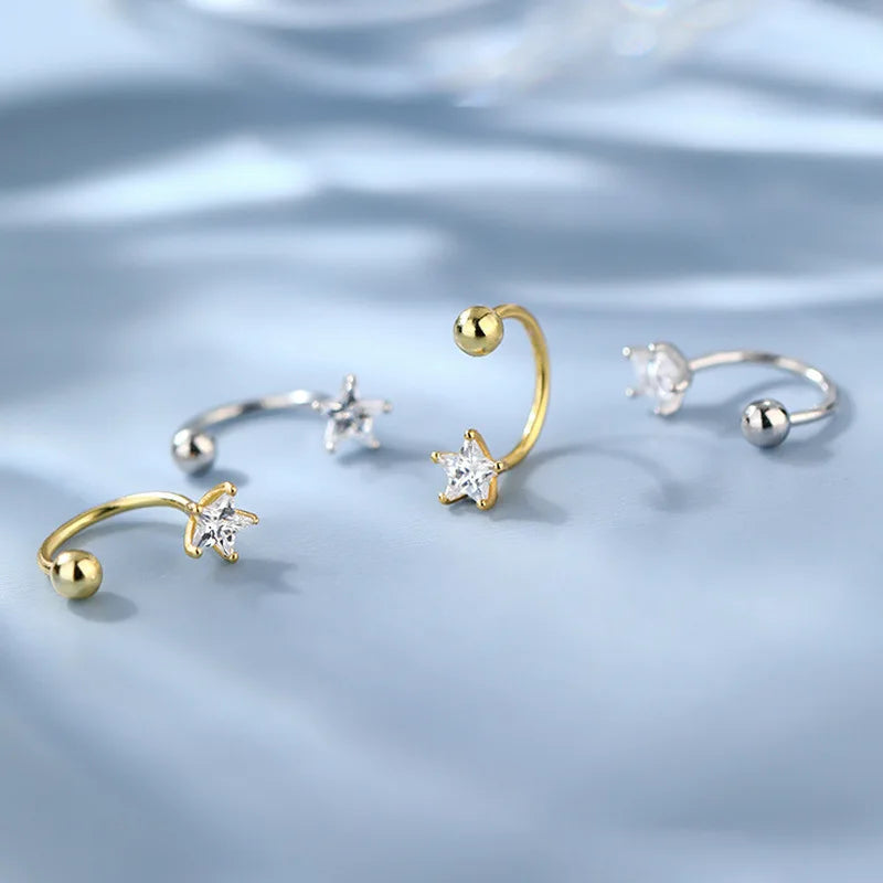 Ontdek de tijdloze elegantie van de spiraalvormige oorbel met een ster en een schroefsluiting. Dit delicate sieraad, verkrijgbaar in goud en zilver, is ontworpen om een vleugje sofistication toe te voegen aan je dagelijkse stijl.
