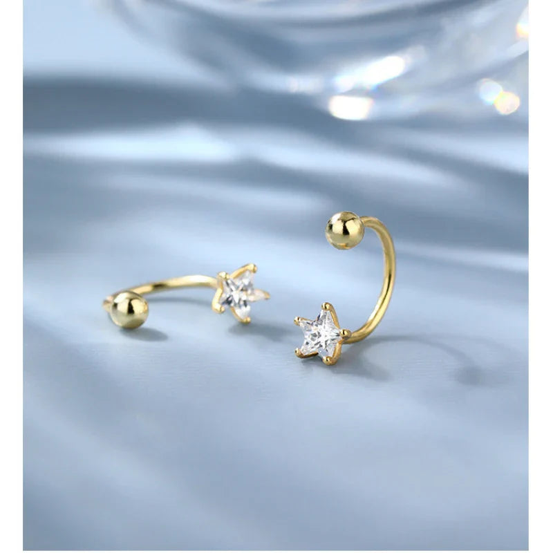 De spiraalvorm en de stervormige uiteinden roepen een gevoel van lichtheid en mysterie op, terwijl het compacte formaat het de perfecte accessoire maakt voor je oren. Door het te dragen, voel je een intieme connectie met je eigen elegantie, wat de schoonheid van je gezicht benadrukt en je blik laat stralen.