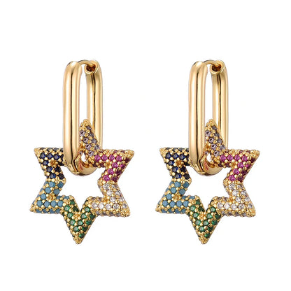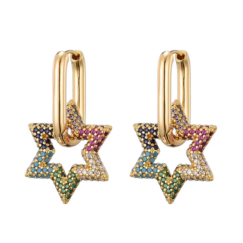 Duik in het schitterende universum van de sterrenoorbellen, een uniek sieraad dat uw stijl met elegantie zal verlichten. Deze gouden hangers, versierd met sterren die zorgvuldig ingelegd zijn met fonkelende stenen, trekken de aandacht en voegen een magisch tintje toe aan elke outfit.