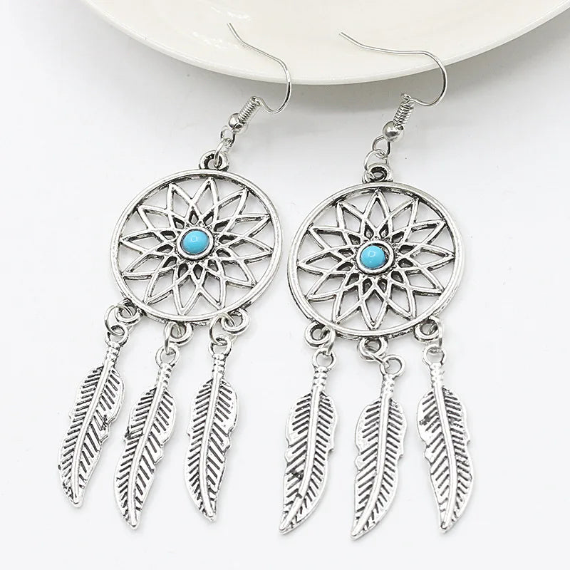 Duik in het betoverende universum van de magie van dromen met dit paar oorbellen Droomvanger Oorbellen. Met elegantie ontworpen, herinnert hun circulaire vorm aan de zachte beweging van dromen, terwijl het sterrenmotief en de verenhangers een luchtige en bohemien touch geven.