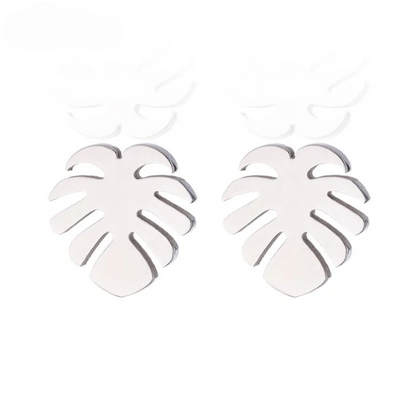 Laat u verleiden door de subtiele elegantie van de Cocospalmblad Oorbellen, een sieraad geïnspireerd door de natuur, dat zowel lichtheid als verfijning uitstraalt. Met hun verfijnde Monstera-bladvorm brengen deze zilverkleurige juweeltjes een vleugje frisheid in elke outfit.