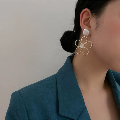 Ontdek de tijdloze elegantie van de bloemvormige oorbellen in metaal, een sieraad dat sofisticatie en fijnheid weet te combineren. Gedompeld in een zachte gouden tint, sieren deze oorbellen uw gezicht met gratie, terwijl ze uw persoonlijke stijl benadrukken.