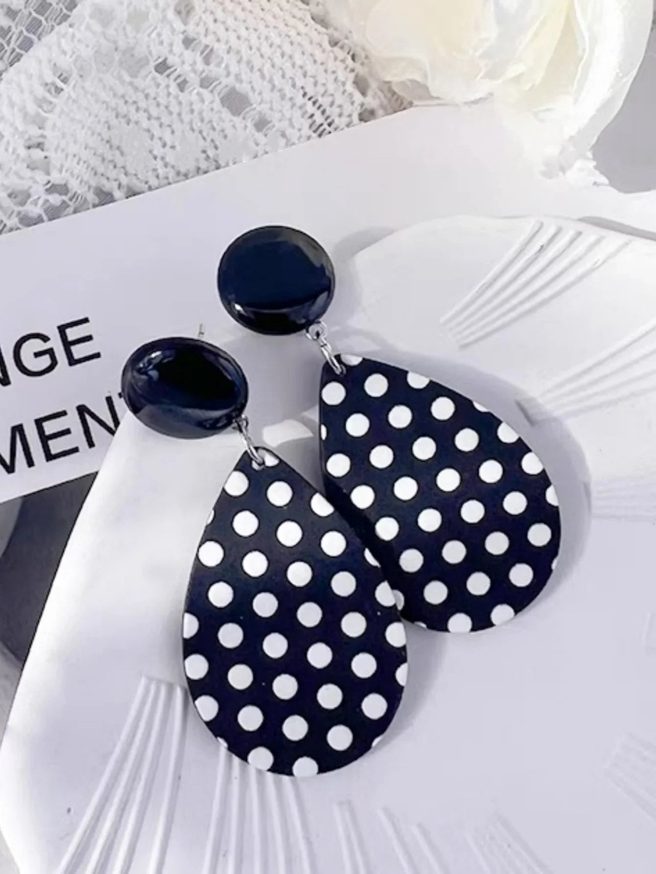 In het hart van de mode zijn de Druppelvormige Oorbellen met Witte Puntjes een onbetwistbaar symbool van elegantie en verfijning.