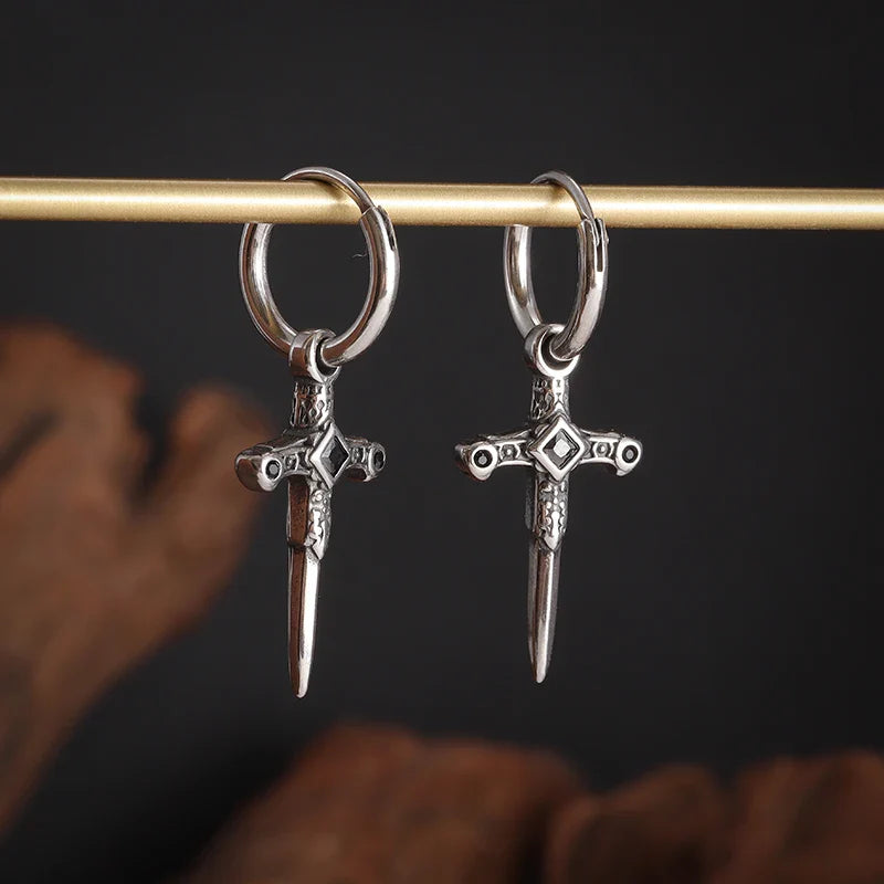 Heren Oorbellen Zwaard, het ultieme symbool van kracht, moed en avontuur. Dit paar oorbellen is ontstaan uit de samensmelting van de traditionele kunst van de juwelenmakerij en moderniteit. Hun gedurfde en elegante ontwerp zal je uitstraling versterken.