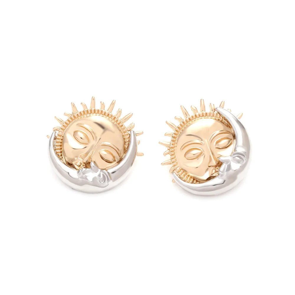 Breng een vleugje tijdloze elegantie aan je look met de Maan en Zon Ronde Oorbellen.