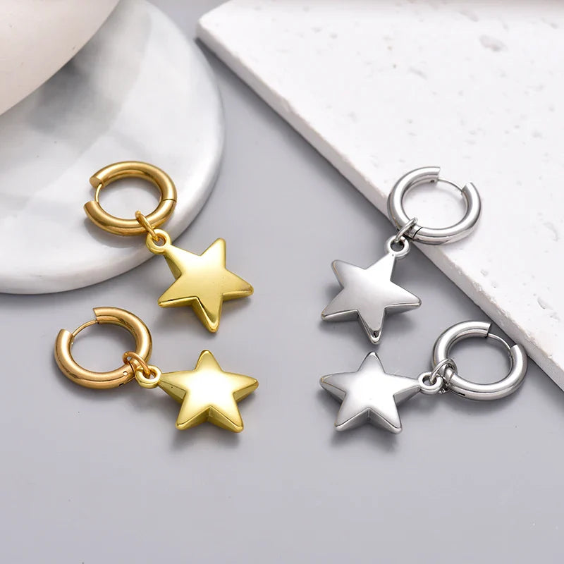 De combinatie van verfijning en eenvoud van de hangende oorbellen ster zal hemelse gevoelens in je opwekken en een regen van complimenten oproepen.