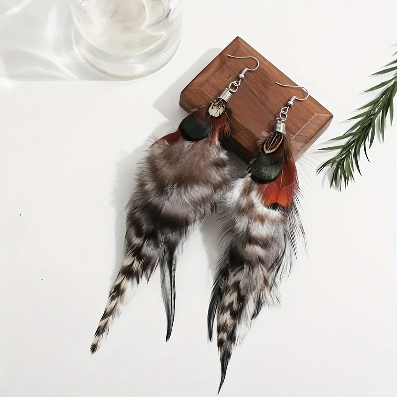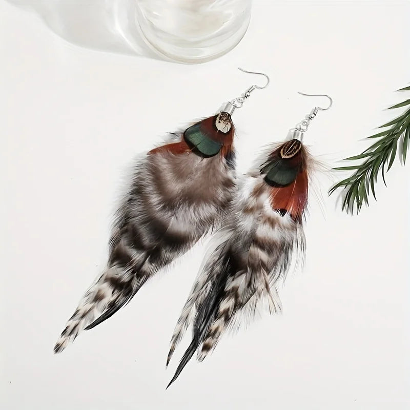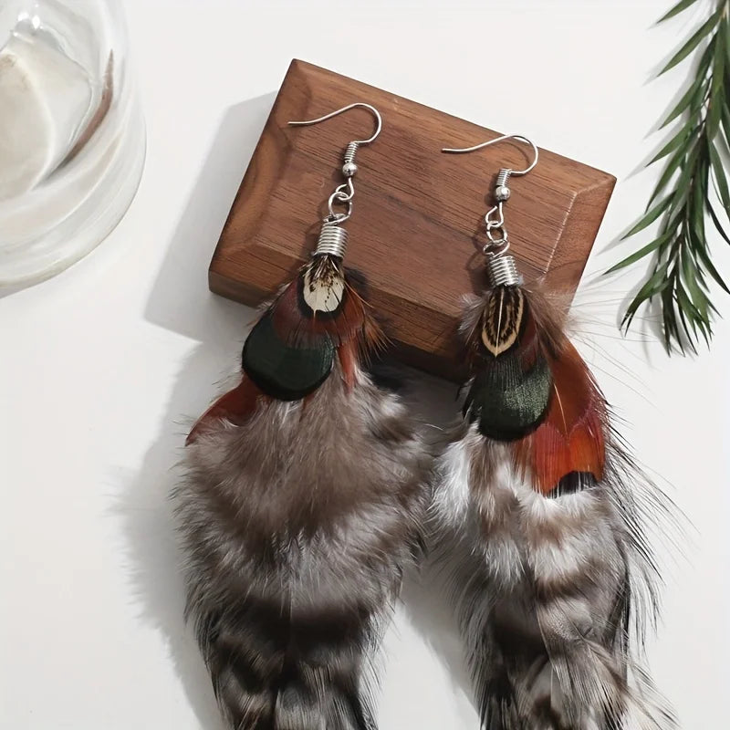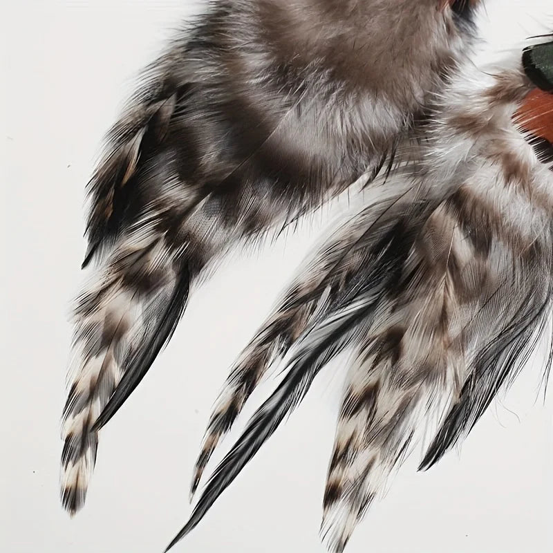 Verfijnd en exotisch, deze sieraden zijn vervaardigd uit echte fazantenveren. Ze dienen minder als ornament en meer als een verklaring van uw unieke persoonlijkheid en een uiting van uw eclectische conversatie.