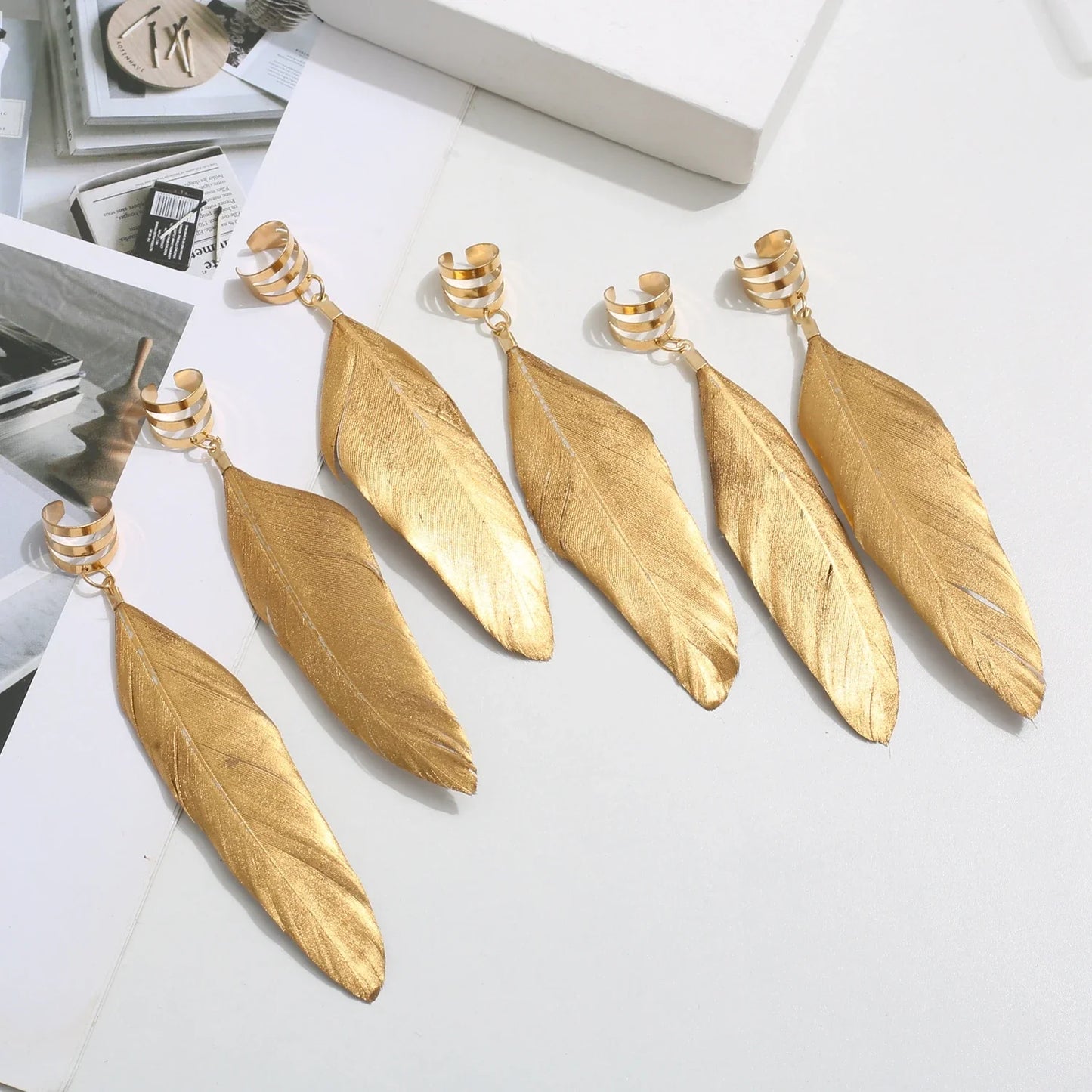 Praktisch en lichtgewicht, deze oorbellen zullen snel uw dagelijkse metgezellen worden. Laat u betoveren door de zachte streling van de gouden veer.