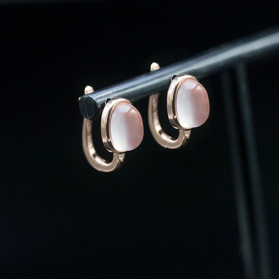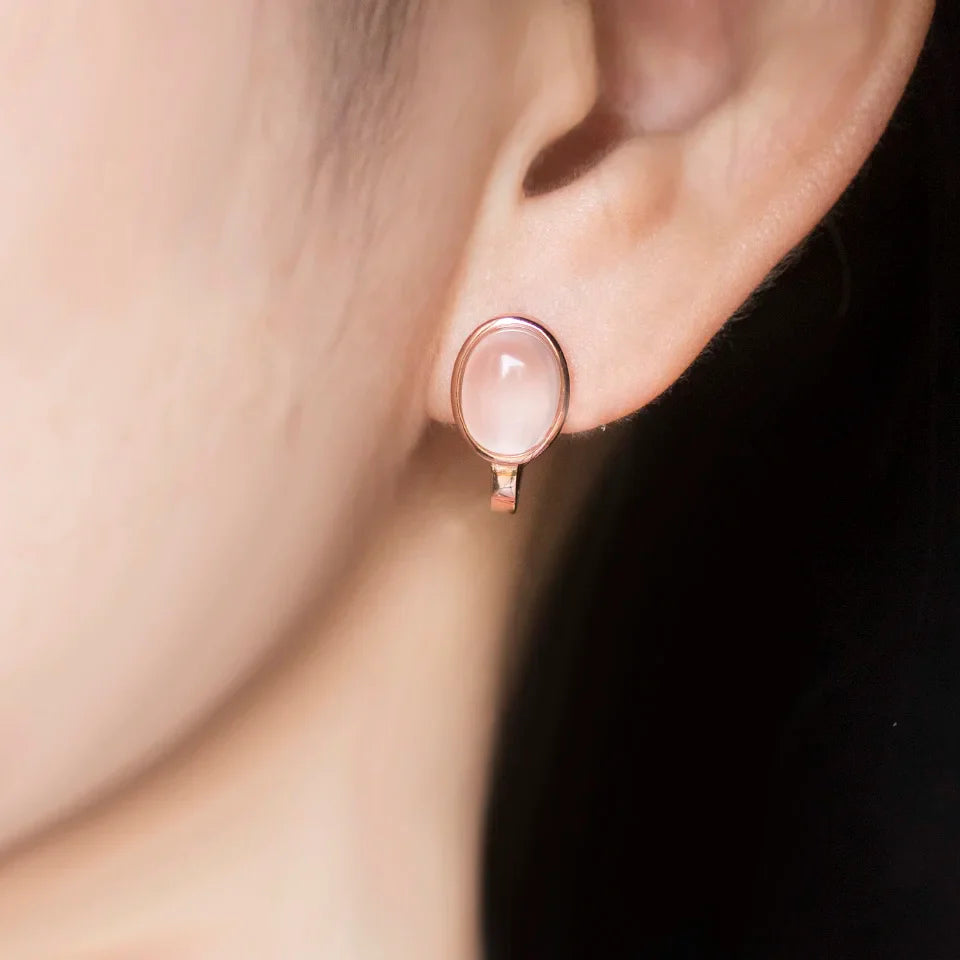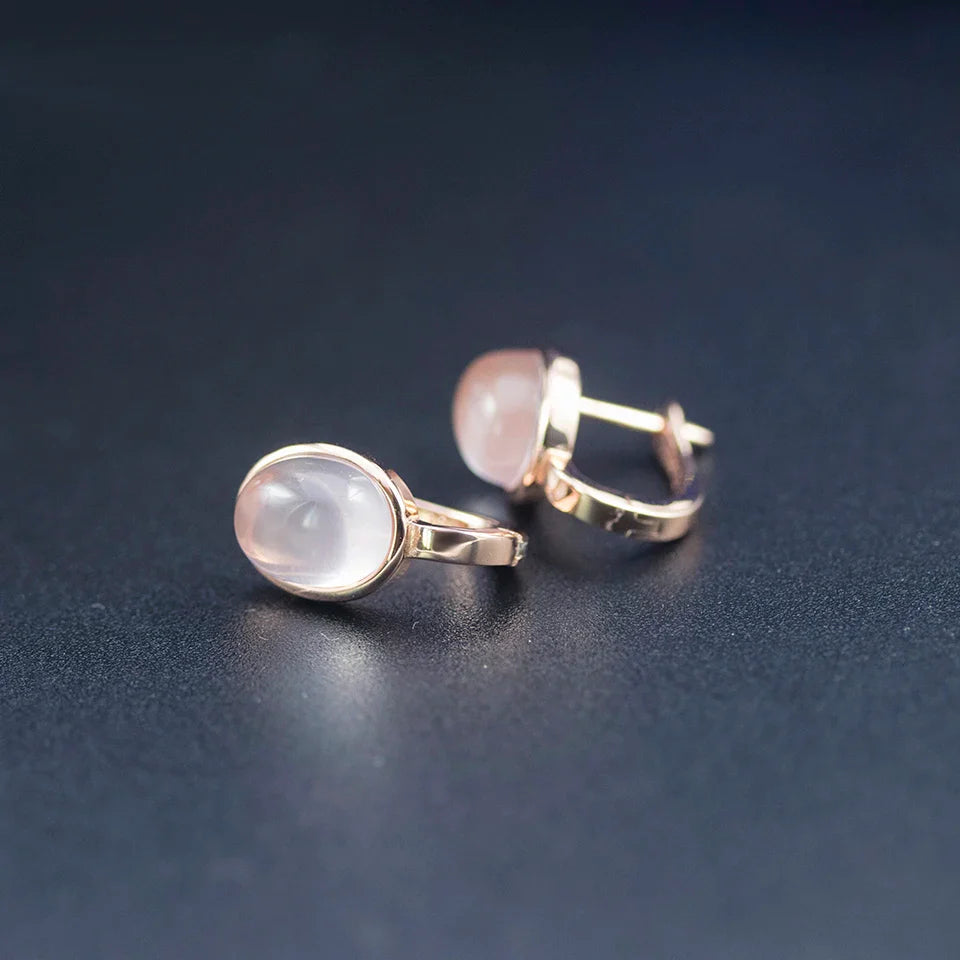 Ontdek de fijne Ovale Rozenkwarts oorbellen, een subtiele mix van elegantie en moderniteit. Hun ovale vorm, elegant ontworpen in goudkleurig metaal, harmonieert prachtig met de zachte lichtroze tint van de rozenkwarts steen, die liefde en zachtheid symboliseert.