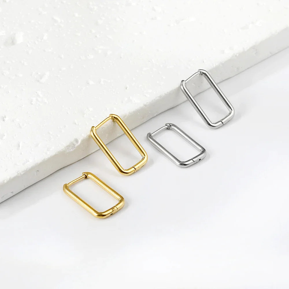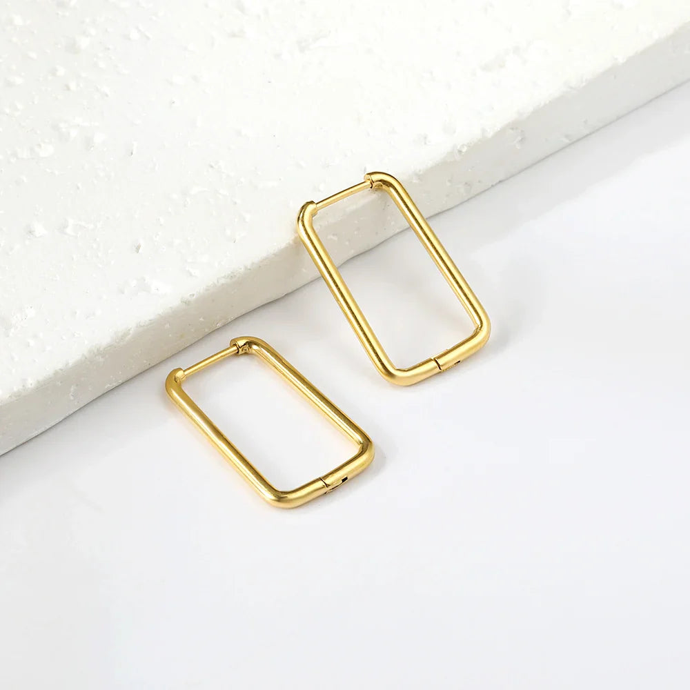 Ontdek de minimalistische rechthoekige oorbellen, een accessoire dat trends overstijgt en zich moeiteloos aanpast aan elke stijl. Hun strakke ontwerp, waarin goud en zilver subtiel samenkomen, straalt een moeiteloze elegantie uit en benadrukt uw persoonlijkheid, terwijl het een verfijnde touch toevoegt aan elke outfit.