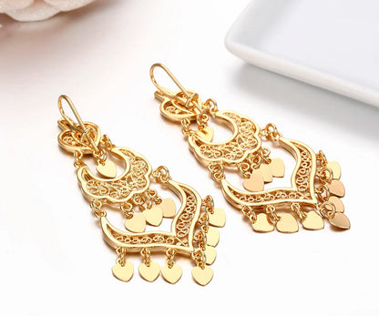 De opengewerkte details en de delicate hangers in de vorm van een blad zorgen voor een subtiele toets van verfijning die uw gezicht laat stralen, en u een gevoel van gratie geeft bij elke beweging.