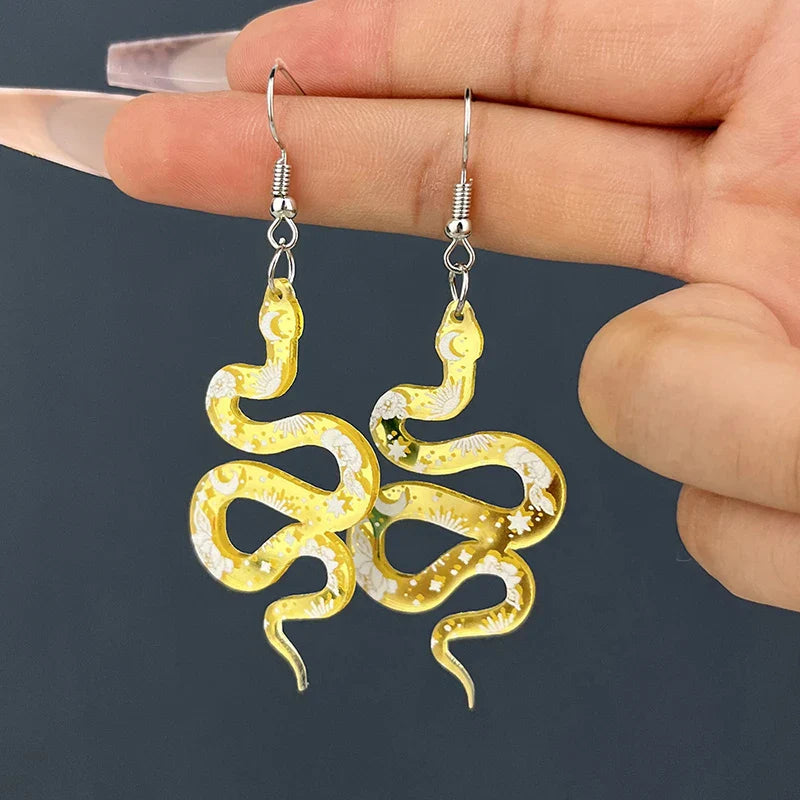 Laat u meenemen naar een mystieke wereld waarin slangen niet alleen als dreigende wezens worden beschouwd, maar ook als symbolen van transformatie en wedergeboorte. Gemaakt van hoogwaardige acrylmaterialen, hebben deze slangenoorbellen een levendig, multicolour design dat de aandacht trekt en de blikken vangt.
