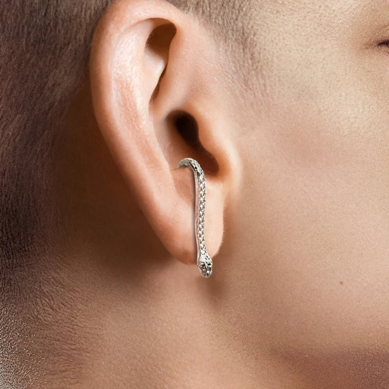 De slangvorm, lang en sierlijk kronkelend rond uw oor, is een ode aan de kunst van de juwelenmakerij – een minutieus vakmanschap dat deze stukken een uiterst aantrekkelijke uitstraling geeft. De slang, een symbool van energie en vernieuwing, voegt een krachtige betekenis toe aan deze oorbellen en geeft u een onwankelbaar zelfvertrouwen telkens wanneer u ze draagt.