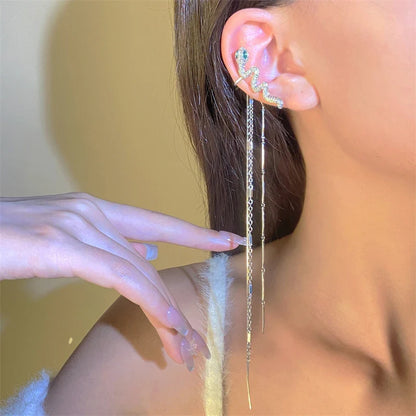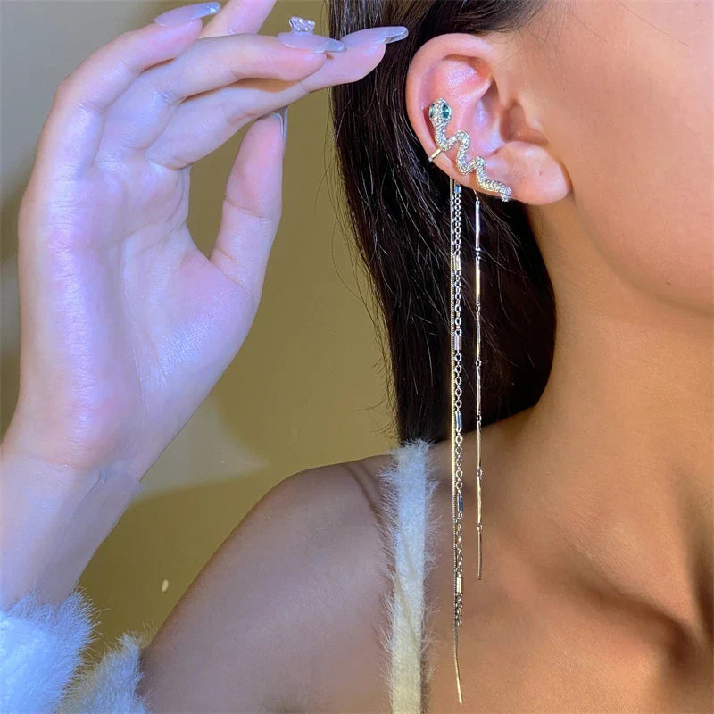 Oorbellen Slang Hanger aan Ketting - een gedurfd en elegant sieraad dat de uniekheid van de drager definieert. Deze zorgvuldig vervaardigde oorbellen creëren de perfecte illusie van een slang die zich om je oor wikkelt, wat zorgt voor een look die aantrekkingskracht en mysterie combineert.