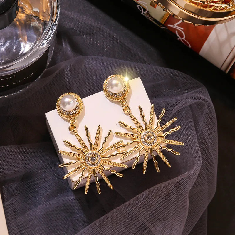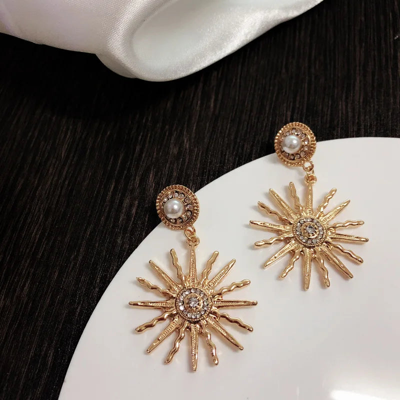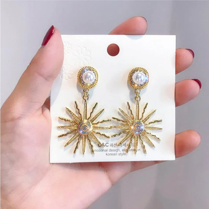 Dompel uzelf onder in zonovergoten elegantie met deze oorbel in de vorm van een zon, versierd met fijne stralen en prachtige witte parels. Elk stuk is een ode aan de Koreaanse stijl, waar durf en verfijning samenkomen om uw dagelijks leven te verlichten.